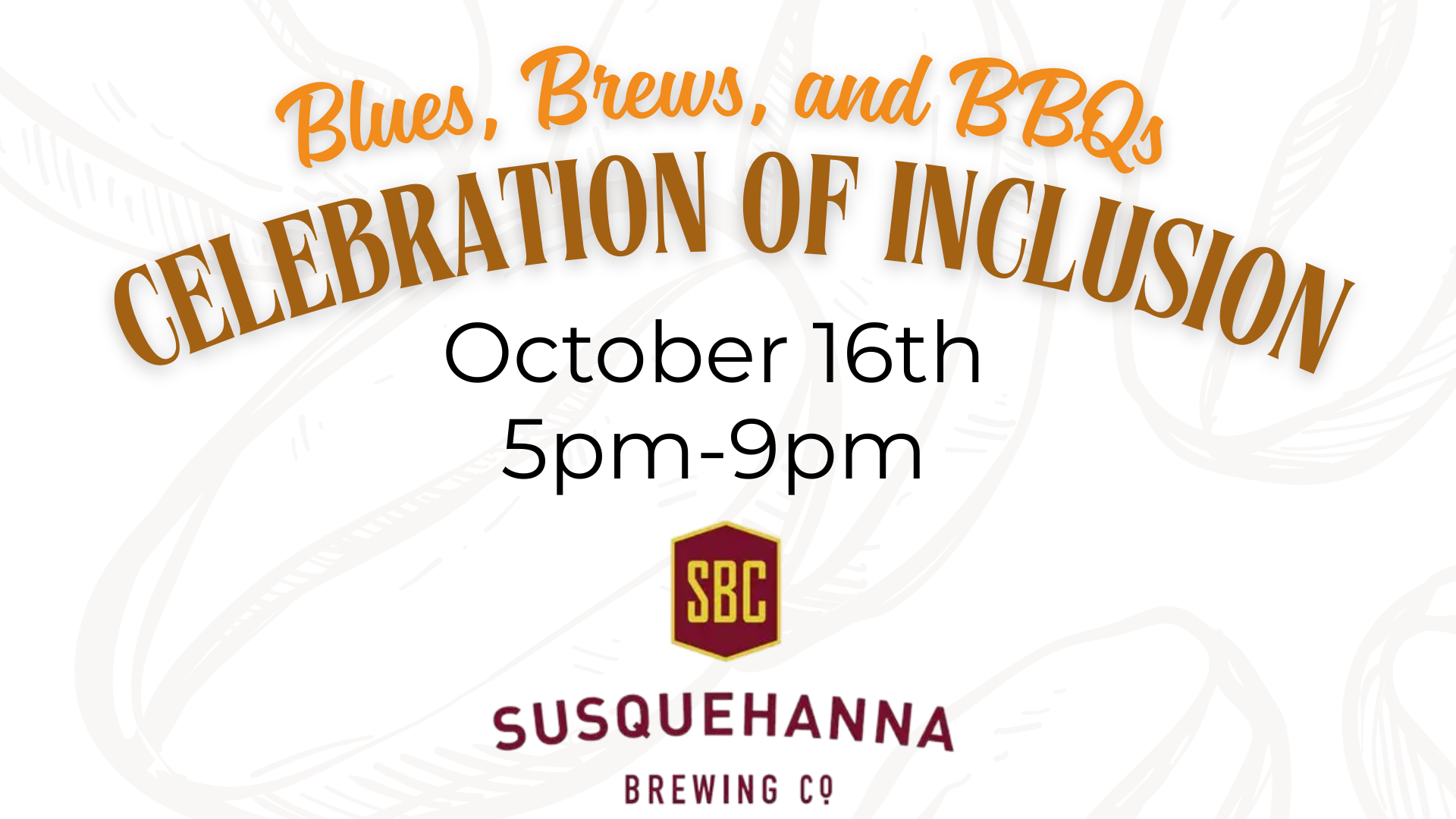 Join us for Blues, Brews, and BBQs: Celebration of Inclusion on Wednesday, October 16th from 5:00 to 9:00 PM at Susquehanna Brewing Company.